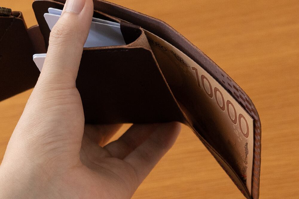 札入れは、紙幣を折りたたまずに収納できます。10枚推奨。