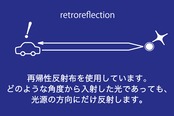微小なガラスビーズが塗布された特殊な反射布が、どのような角度から入射した光も必ず光源方向にだけ反射します。身につけているご本人は、反射がチラついて鬱陶しい、というような事はありません。