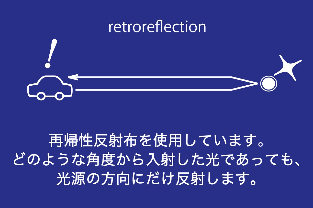 光源方向に光を跳ね返し、暗い夜道でも、